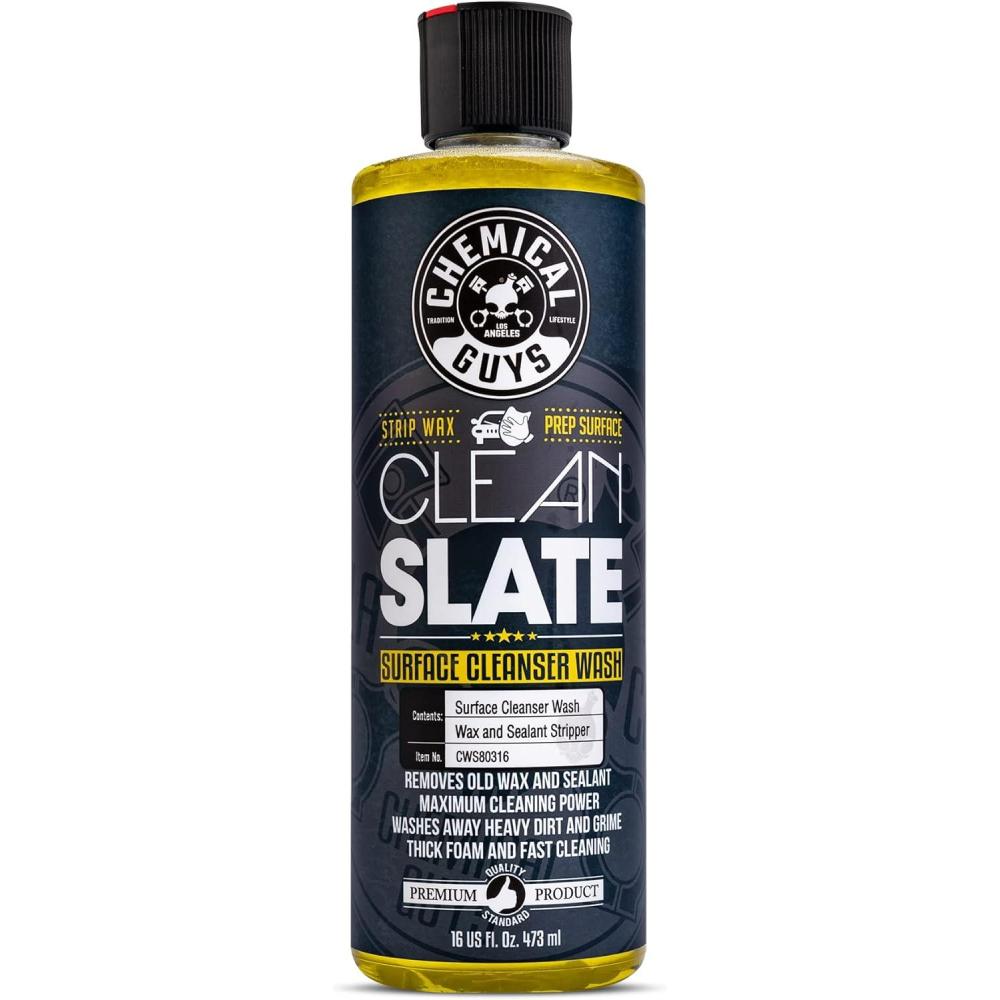 Clean Slate Surface Cleanser Wash is a premium car soap that strips away old wax before a full detail. The advanced cleaning formula removes dirt, debris, and old layers of wax to prepare the surface for further detailing treatments or vehicle wrapping. Professional detailers routinely remove old layers of wax and sealant that block fresh wax, clear bras, and vinyl wraps from sticking directly to paintwork. Wash with Clean Slate before polishing to avoid wax residue buildup on polishing pads. Remove leftover coatings with Clean Slate to make clay bar decontamination services faster and easier. Use Clean Slate after polishing to remove oils and residues before applying vehicle coatings, clear bra wraps, vinyl wraps, decals, or protective wax.