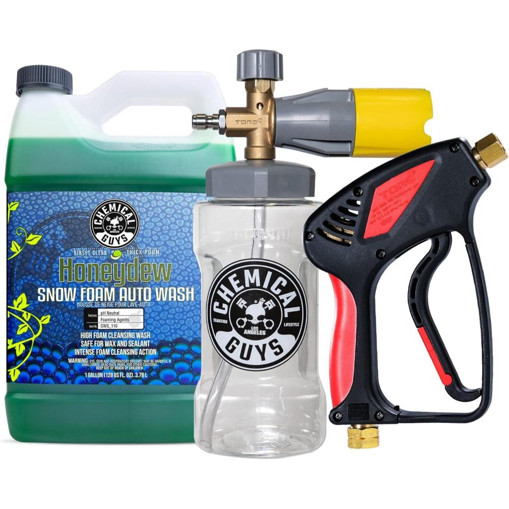 Chemical Guys CWS_110PMSK Big Mouth Pressure Washer Starter Kit – Honeydew Snow Foam Car Wash Soap, 128 fl oz (1 Gallon) + Big Mouth Foam Cannon & Snubby Spray Foam Gun, for Pressure Washer – 3 Items(SOAP + BIG MOUTH + SNUBBY)