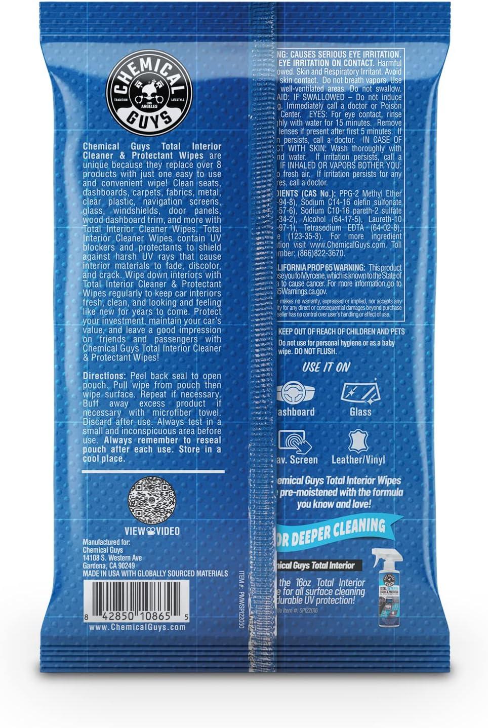 Chemical Guys Total Interior Cleaner & Protectant Canister Wipes, Great for Cars, Trucks, SUVs, RVs, & More (30 Ct) – PMWCSPI22030(50 Count (Pack of 1))