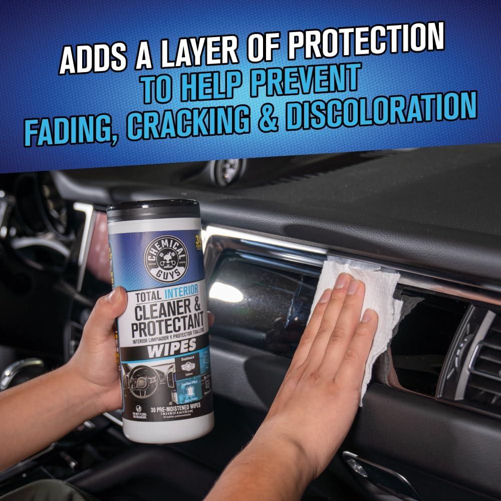 Keep your car’s interior looking and feeling like new with Chemical Guys Total Interior Canister Wipes. These versatile, all-in-one wipes are perfect for quick, easy cleaning and protection on the go. Designed for use on a variety of surfaces—leather, vinyl, plastic, glass, and more—Total Interior Canister Wipes effortlessly remove dirt, dust, fingerprints, and grime without leaving behind any greasy residue. The quick-drying formula ensures a streak-free, smooth finish, while built-in UV protection helps prevent fading, cracking, and discoloration, extending the life of your car’s interior. With a convenient 30-count canister, you’ll always have a reliable solution for maintaining a spotless, fresh-looking vehicle interior, whether you’re on a road trip or simply running errands. Keep your ride looking its best with Chemical Guys Total Interior Canister Wipes—your go-to solution for interior detailing.
